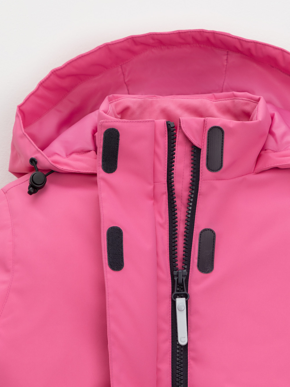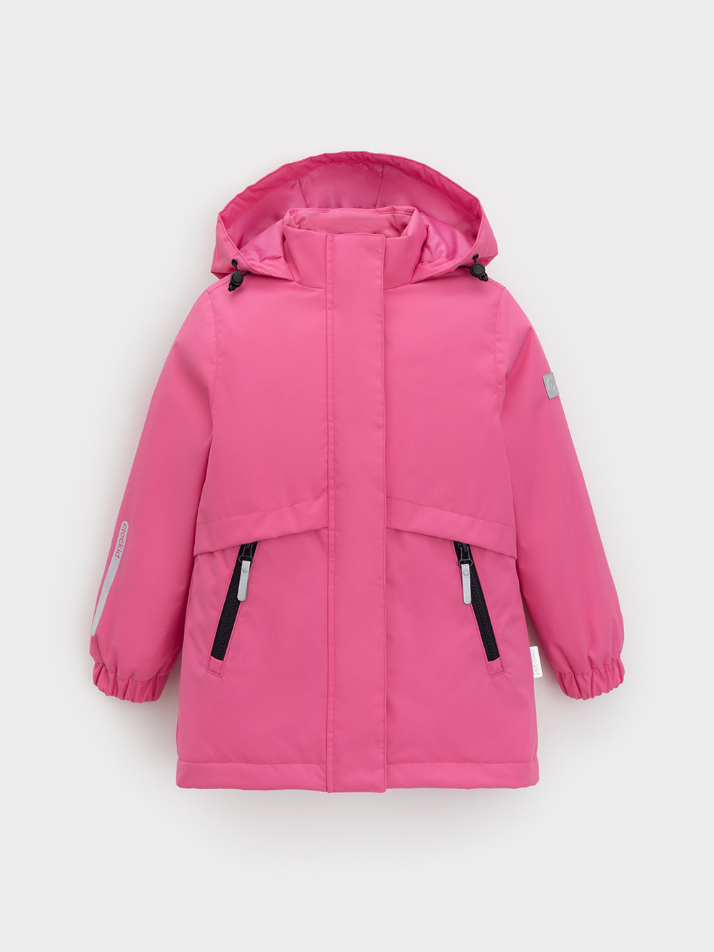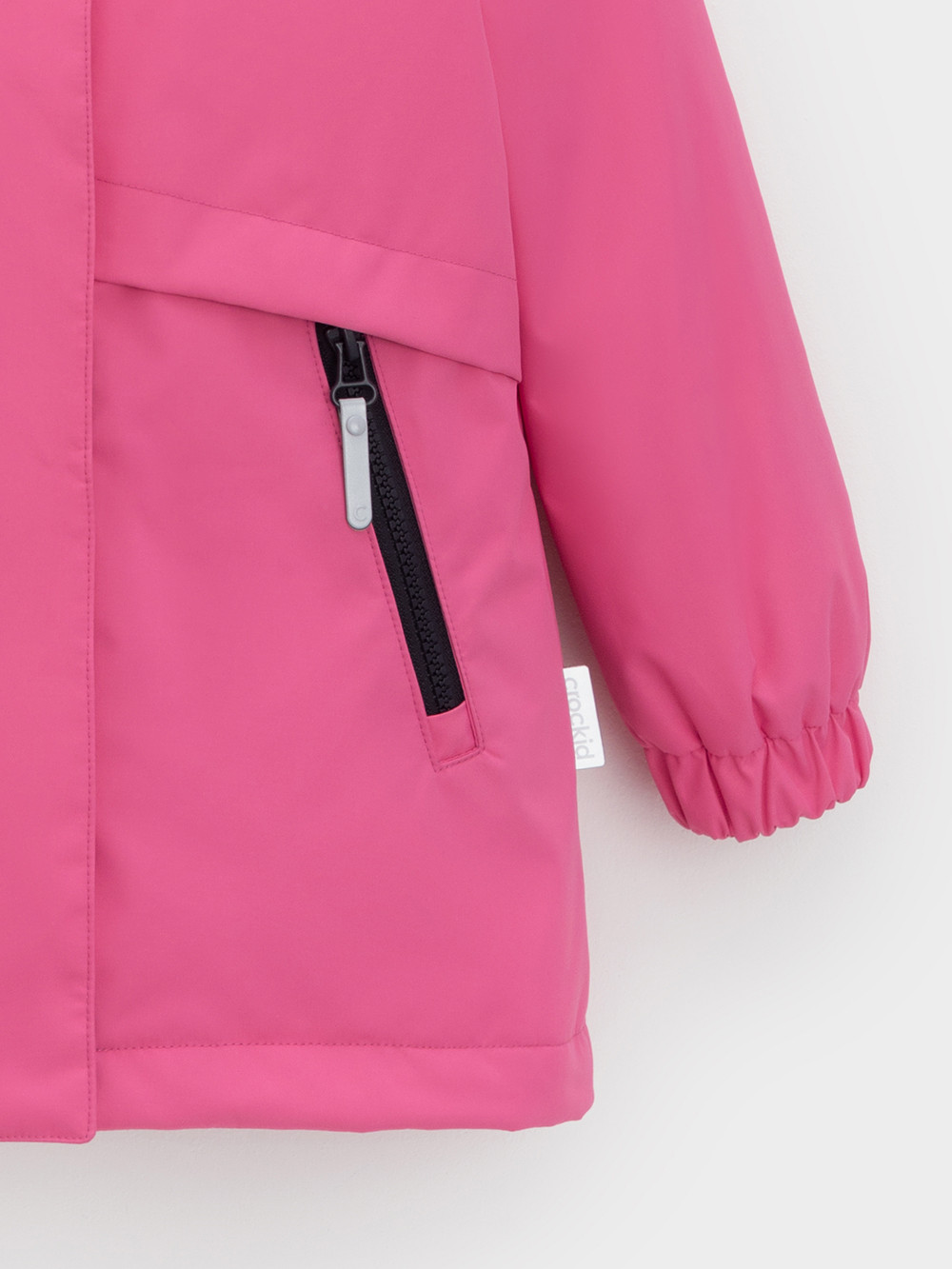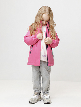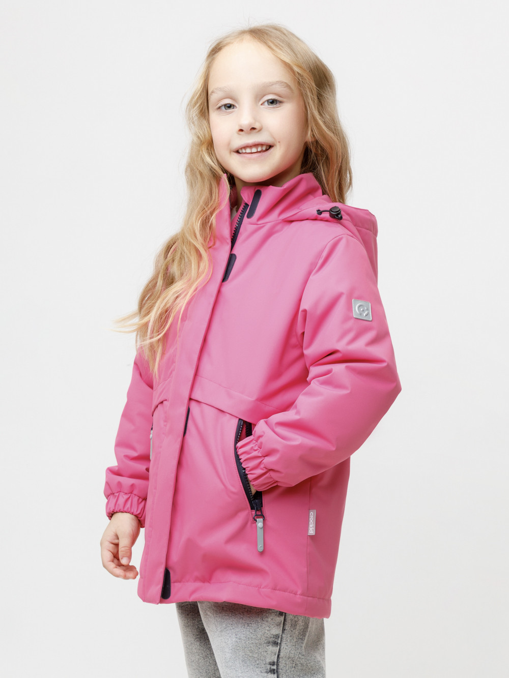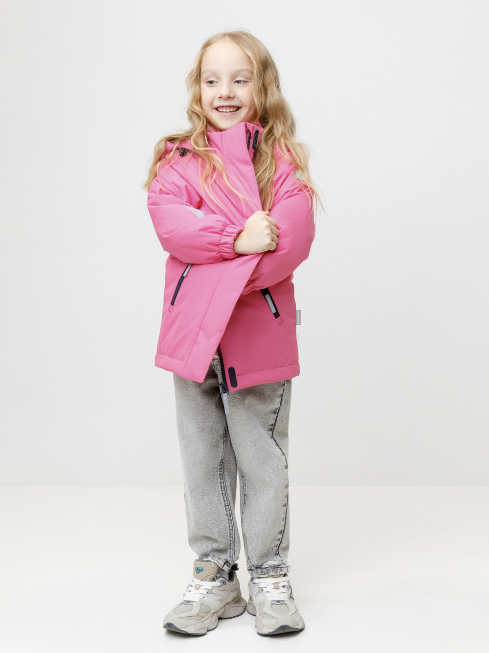 Демисезонная куртка для девочки с утеплителем Fellex®: 120 г/м2. Выполнена из мембранной ткани с тефлоновой обработкой. Данный вид обработки предохраняет изделие от загрязнения и хорошо отталкивает влагу. Подклад из 100% полиэстера. Куртка застёгивается на молнию и дополнительно защищена внешней ветрозащитной планкой на липучках. Предусмотрена защита подбородка. Несъёмный капюшон имеет эластичную утяжку со стопперами. Низ рукавов на эластичной резинке для лучшего прилегания. По бокам два кармана. Во всех изделиях верхнего ассортимента для безопасности ребёнка предусмотрены светоотражающие элементы.