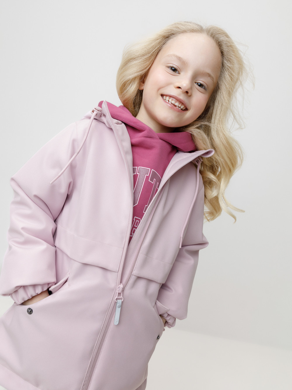 Демисезонная куртка для девочки с утеплителем Fellex®: 120 г/м2. Выполнена из мембранной ткани с дополнительной тефлоновой обработкой. Данный вид обработки предохраняет изделие от загрязнения и хорошо отталкивает влагу. Подклад из 100% полиэстера. Куртка застёгивается на молнию, предусмотрена защита подбородка. Несъёмный капюшон имеет утяжку на шнурок со стопперами. Низ рукавов на эластичной резинке для лучшего прилегания. На талии эластичная внутренняя утяжка при помощи шнура со стопперами. По бокам два кармана. Во всех изделиях верхнего ассортимента для безопасности ребёнка предусмотрены светоотражающие элементы.