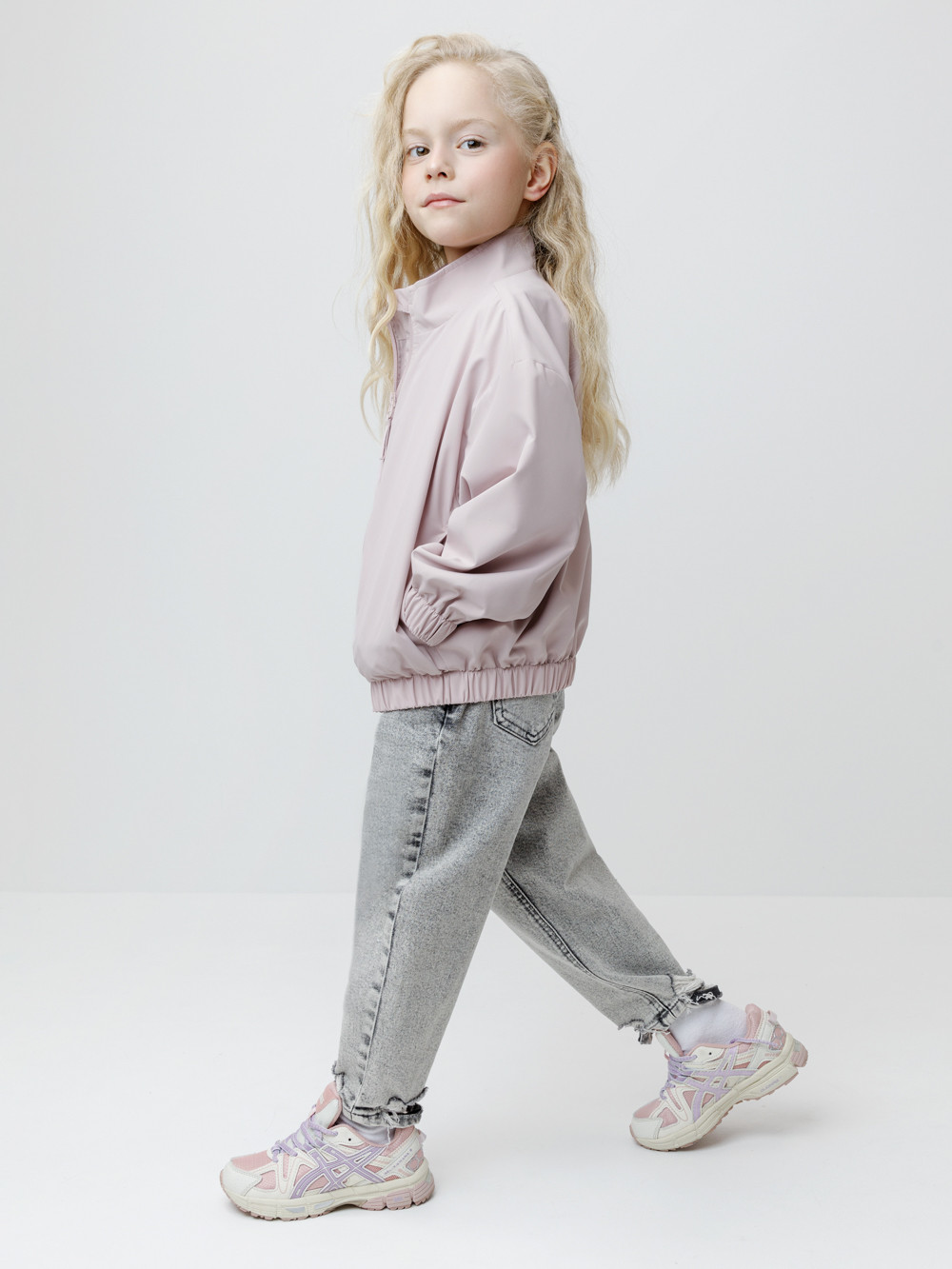 Ветровка для девочки из ткани с дополнительной тефлоновой обработкой. Верхний слой обеспечивает надёжную влагостойкость и воздухопроницаемость. Подклад из 100% полиэстера. У изделия удобная застёжка на молнию и воротник-стойка. На рукавах эластичные манжеты. Эластичная резинка по низу изделия. По бокам два удобных кармана. Светоотражающие элементы служат для дополнительной безопасности в тёмное время суток.