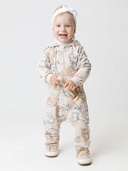 Тёплый комбинезон с капюшоном для девочки. Изготовлен из высококачественного футера с начёсом. Застёгивается на молнию. Манжеты и пояс выполнены из эластичного полотна. Изделие сохраняет цвет и форму после многократных стирок. Все трикотажные полотна производятся в соответствии с нормами швейцарского сертификата ЭкоТекс.