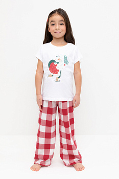 Трикотажная пижама из натурального хлопка. Футболка с принтом и короткими втачными рукавами. У брюк в комплекте мягкий, эластичный пояс на резинке. Оригинальная набивка выполнена из стойких, гипоаллергенных текстильных красителей. Комплект сохраняет цвет и форму после многократных стирок. Все трикотажные полотна производятся в соответсвии с нормами Швейцарского сертификата ЭкоТекс.