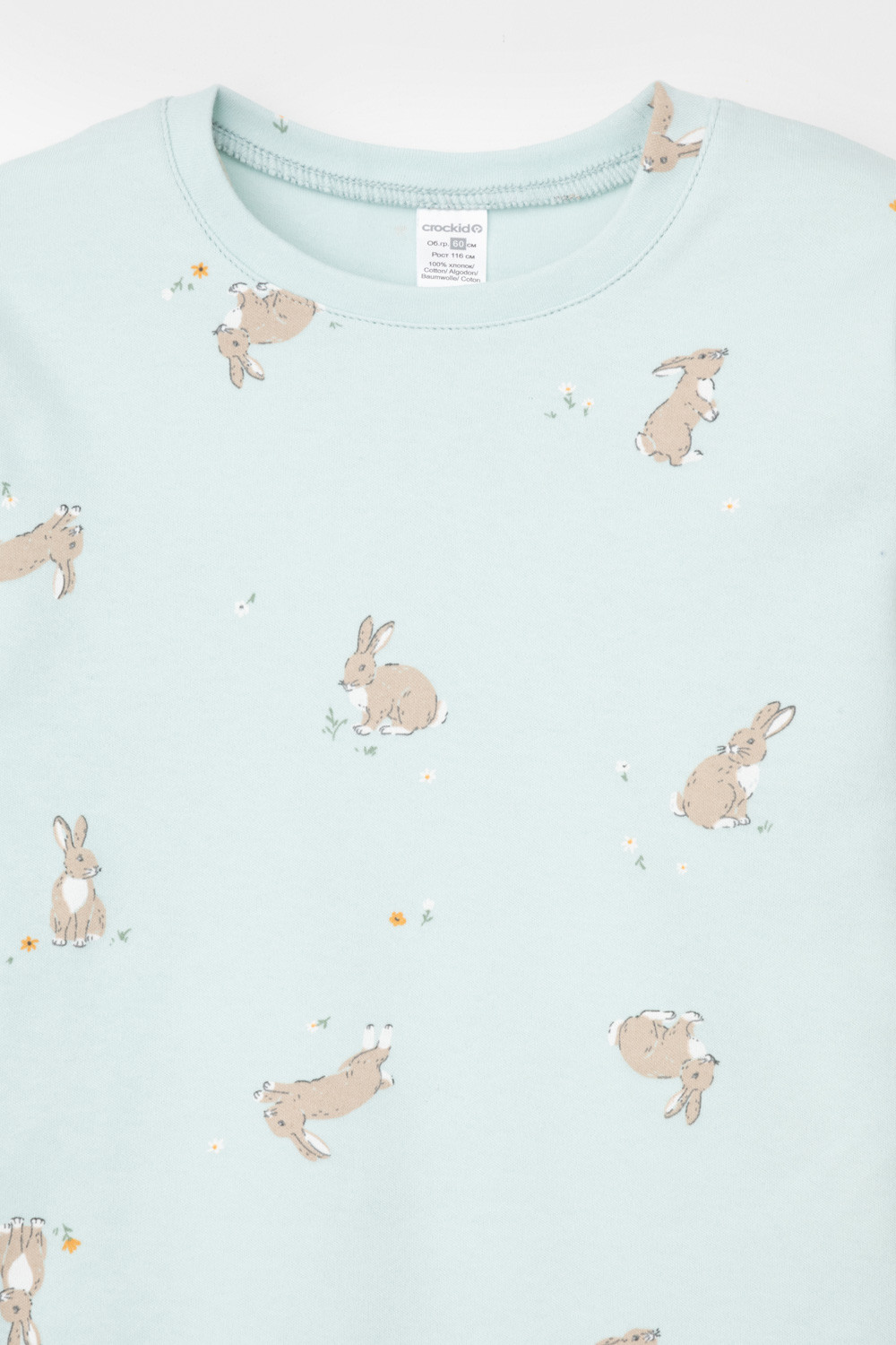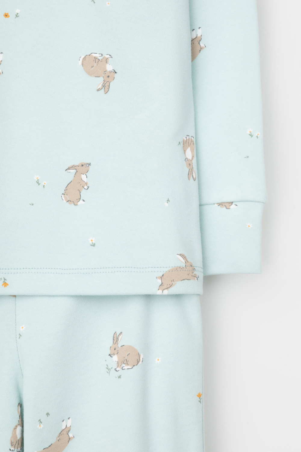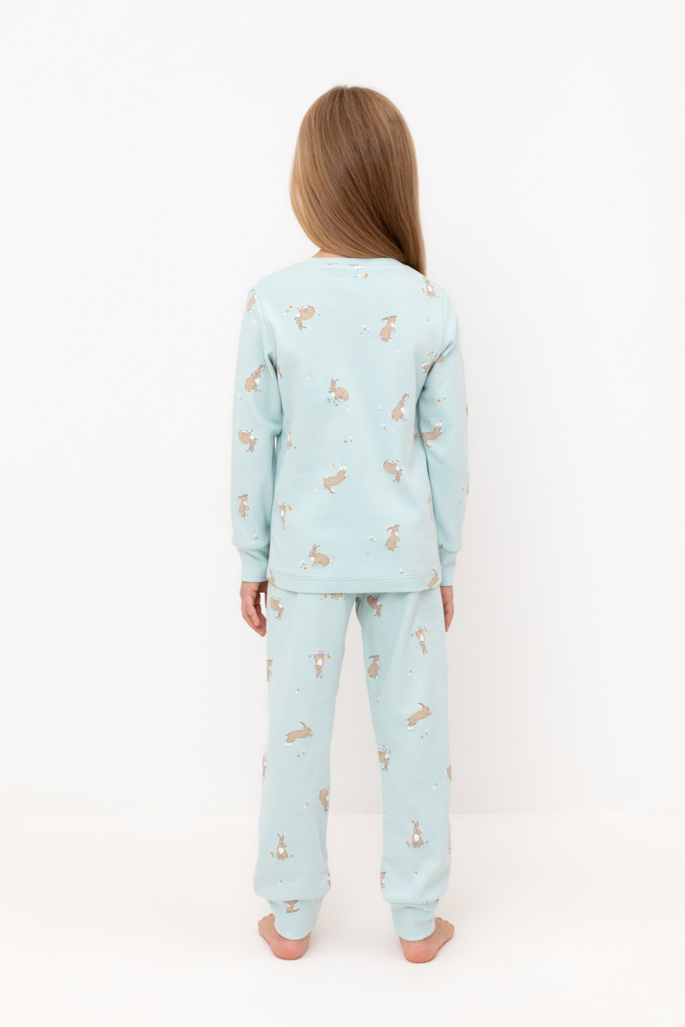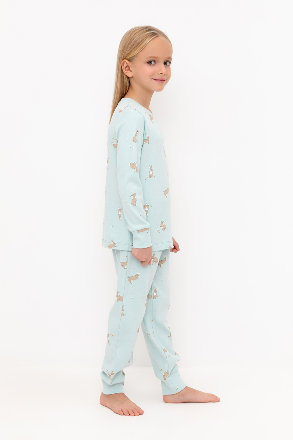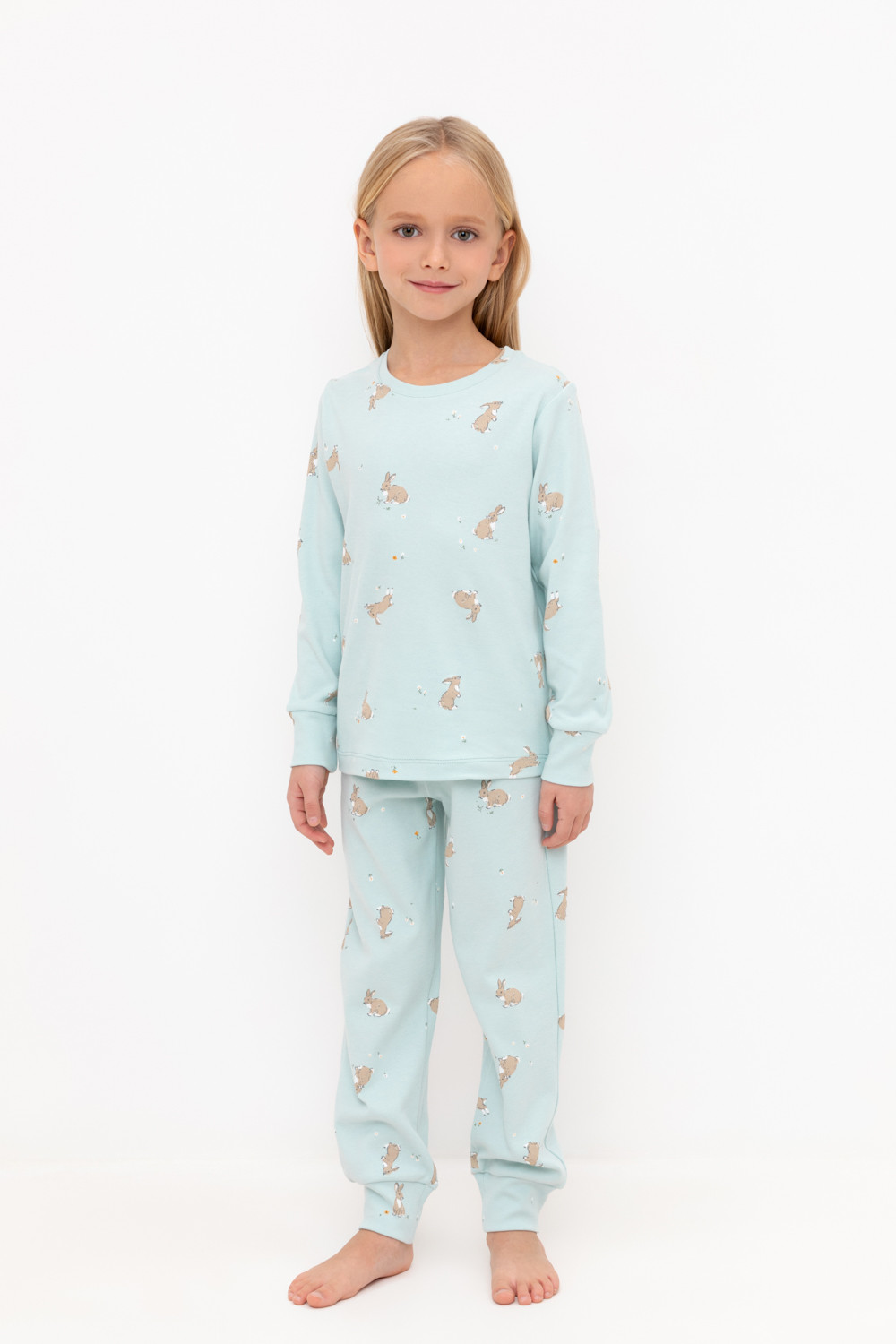 Трикотажная пижама из натурального хлопка. Джемпер с длинными втачными рукавами. У брюк в комплекте мягкий, эластичный пояс на резинке. Оригинальная набивка выполнена из стойких, гипоаллергенных текстильных красителей. Комплект сохраняет цвет и форму после многократных стирок. Все трикотажные полотна производятся в соответсвии с нормами Швейцарского сертификата ЭкоТекс.