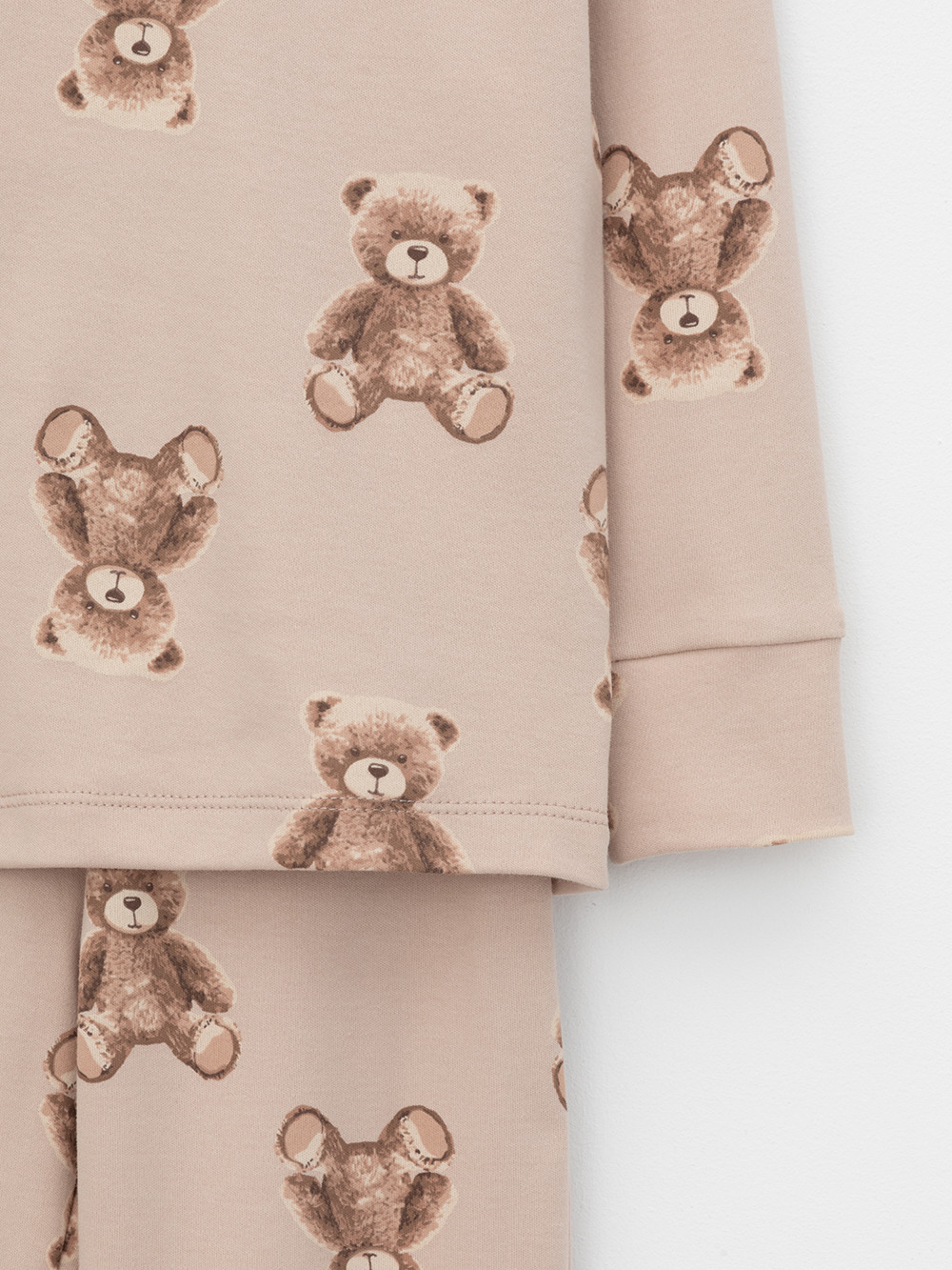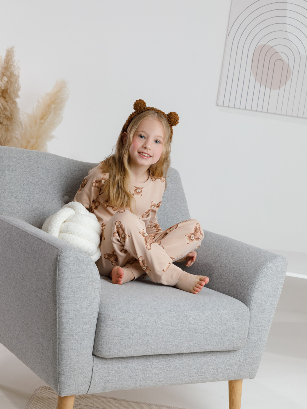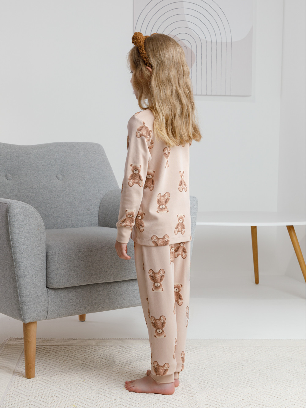Трикотажная пижама из натурального хлопка. Джемпер с длинными втачными рукавами и брюки с эластичной резинкой в поясе. Мягкие манжеты на рукавах и по низу брюк. Оригинальная набивка выполнена из стойких текстильных гипоаллергенных красителей. Изделие сохраняет цвет и форму после многократных стирок. Все трикотажные полотна производятся в соответствии с нормами швейцарского сертификата ЭкоТекс.
