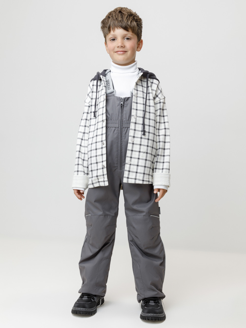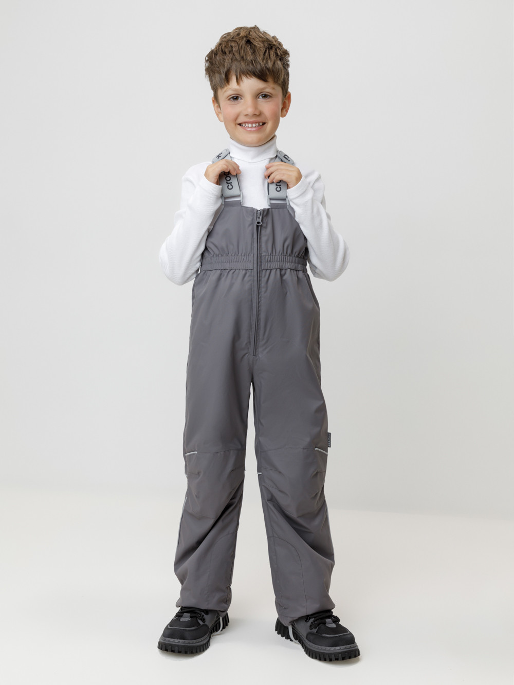 Демисезонный полукомбинезон детский с утеплителем 60 г/м2. Выполнен из мембранной ткани с дополнительной тефлоновой обработкой. Данный вид обработки предохраняет изделие от загрязнения и лучше отводит влагу. Подклад из 100% полиэстера. Эластичные лямки для удобства регулируются по длине. Область коленей дополнительно усилена деталями из основной ткани. Низ регулируется по длине при помощи липучки. Для фиксации полукомбинезона используются съёмные силиконовые штрипки. Во всех изделиях верхнего ассортимента для безопасности ребёнка предусмотрены светоотражающие элементы.