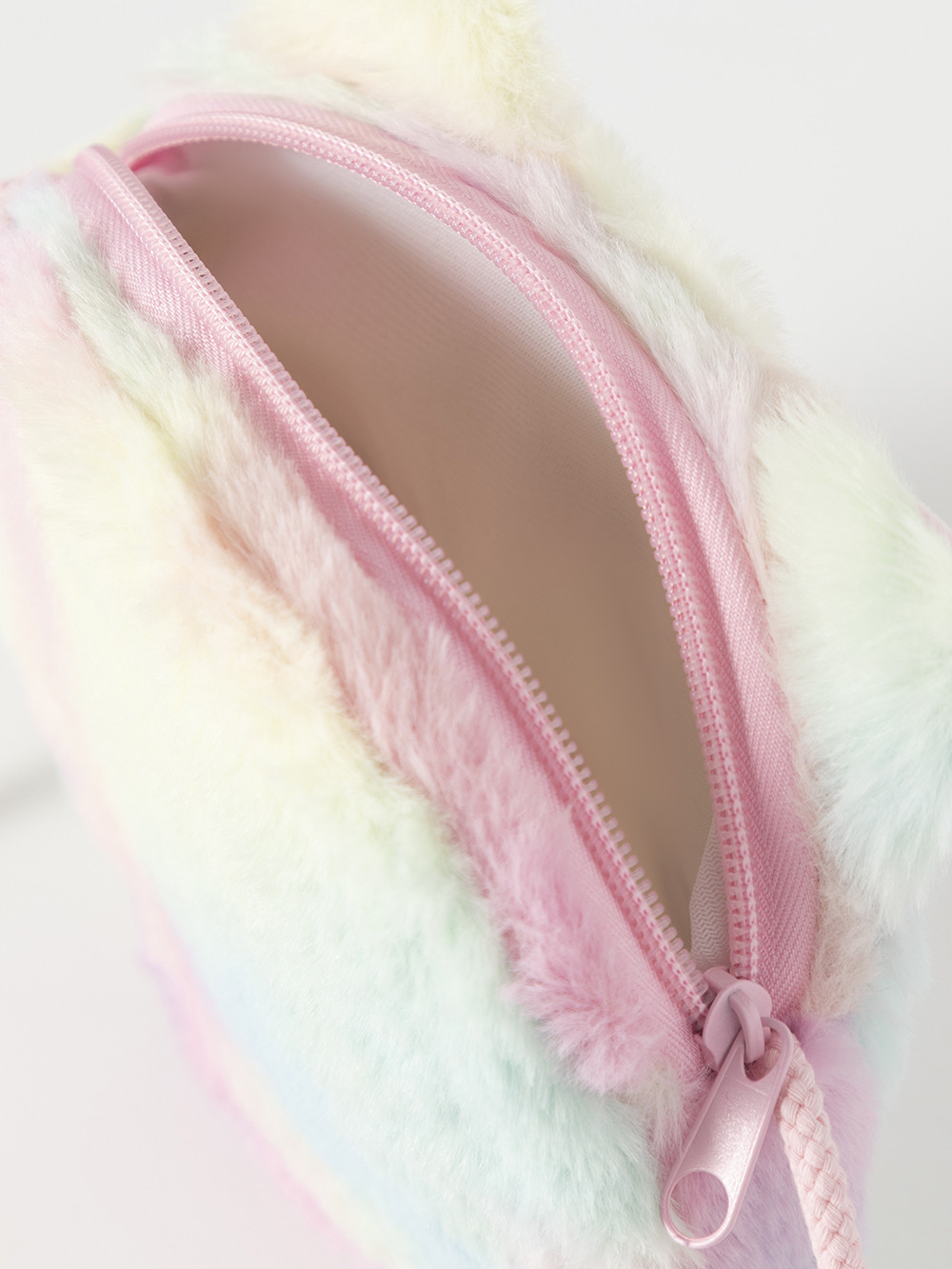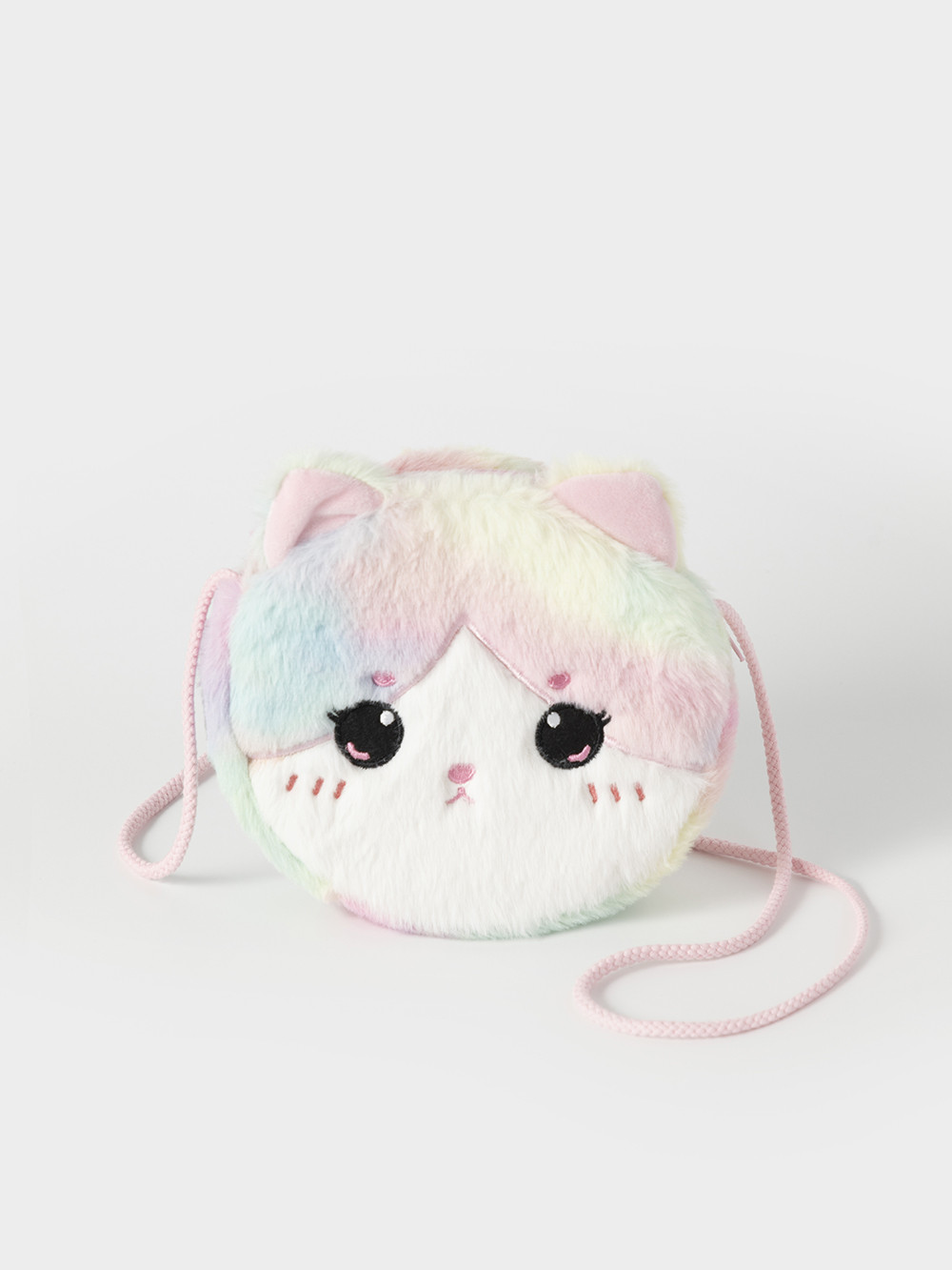 Маленькая круглая сумка для девочки. Закрывается на молнию. Украшена ушками и забавной мордочкой. Подойдёт для хранения бумажных денег и монет, заколочек, зеркальца и других мелочей.