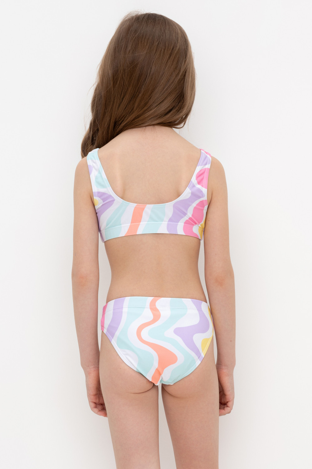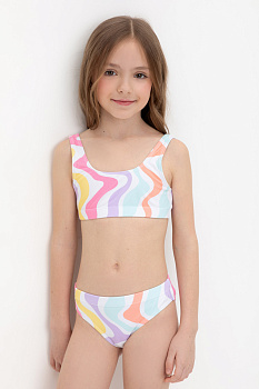 Раздельный купальник для девочки. Топ на эластичных лямках и плавки на резинке . Оригинальная набивка выполнена из стойких гипоаллергенных красителей.