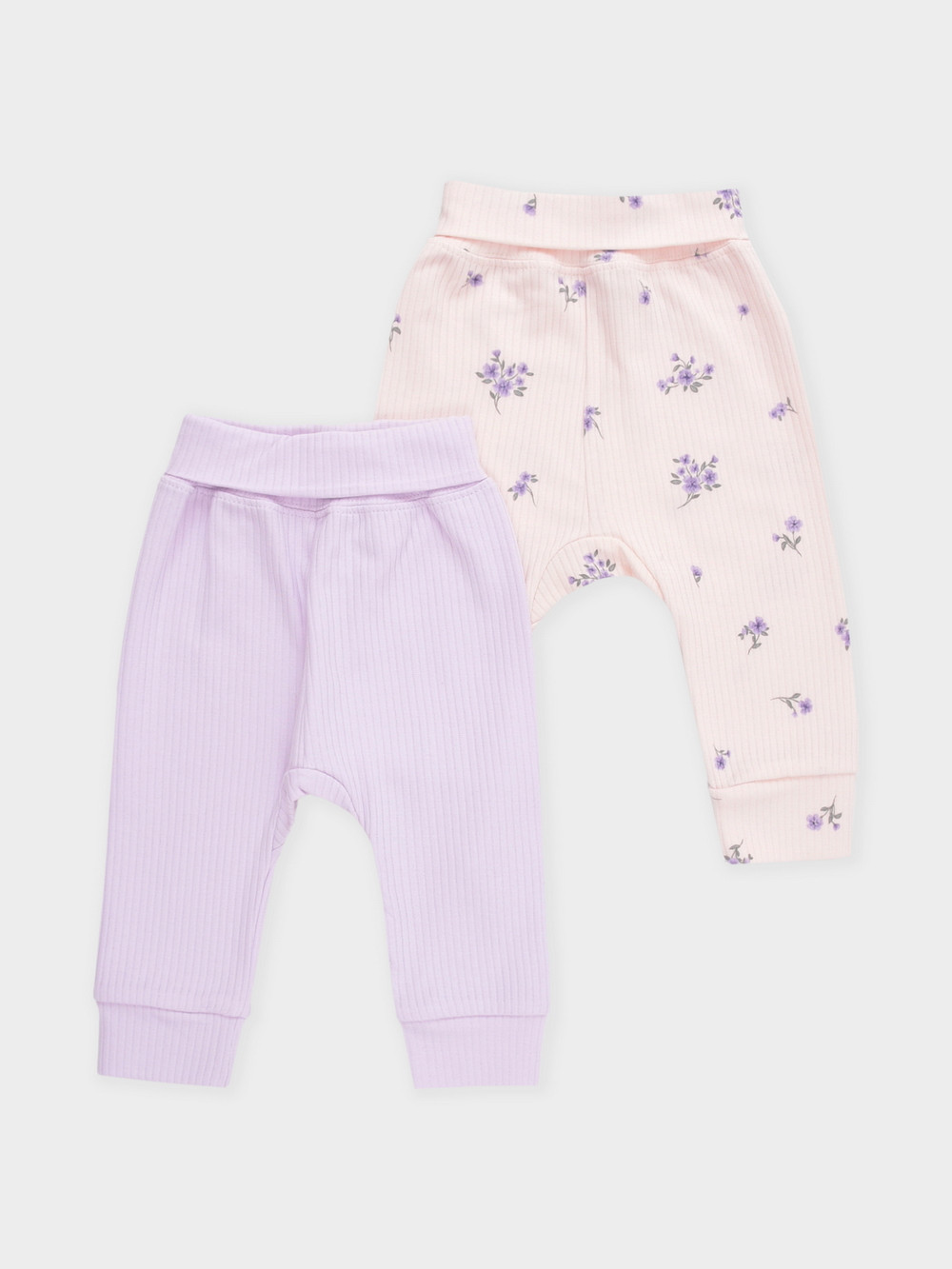 Брюки для новорождённых из мягкого эластичного трикотажа, произведённого из натурального хлопка. В упаковке 2 штуки. Пояс с отворотом на резинке. Все трикотажные полотна производятся в соответствии с нормами швейцарского сертификата ЭкоТекс.