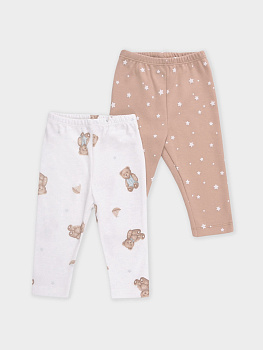 Брюки для новорождённых из мягкого эластичного трикотажа, произведённого из натурального хлопка. В упаковке 2 штуки. Пояс на резинке. Оригинальная набивка выполнена из стойких гипоаллергенных текстильных красителей. Все трикотажные полотна производятся в соответствии с нормами швейцарского сертификата ЭкоТекс.