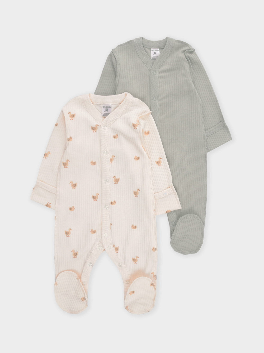 Комбинезоны для новорождённых из мягкого эластичного трикотажа, произведённого из натурального хлопка. В упаковке 2 штуки. Застёгиваются спереди на кнопки. Все трикотажные полотна производятся в соответствии с нормами швейцарского сертификата ЭкоТекс.