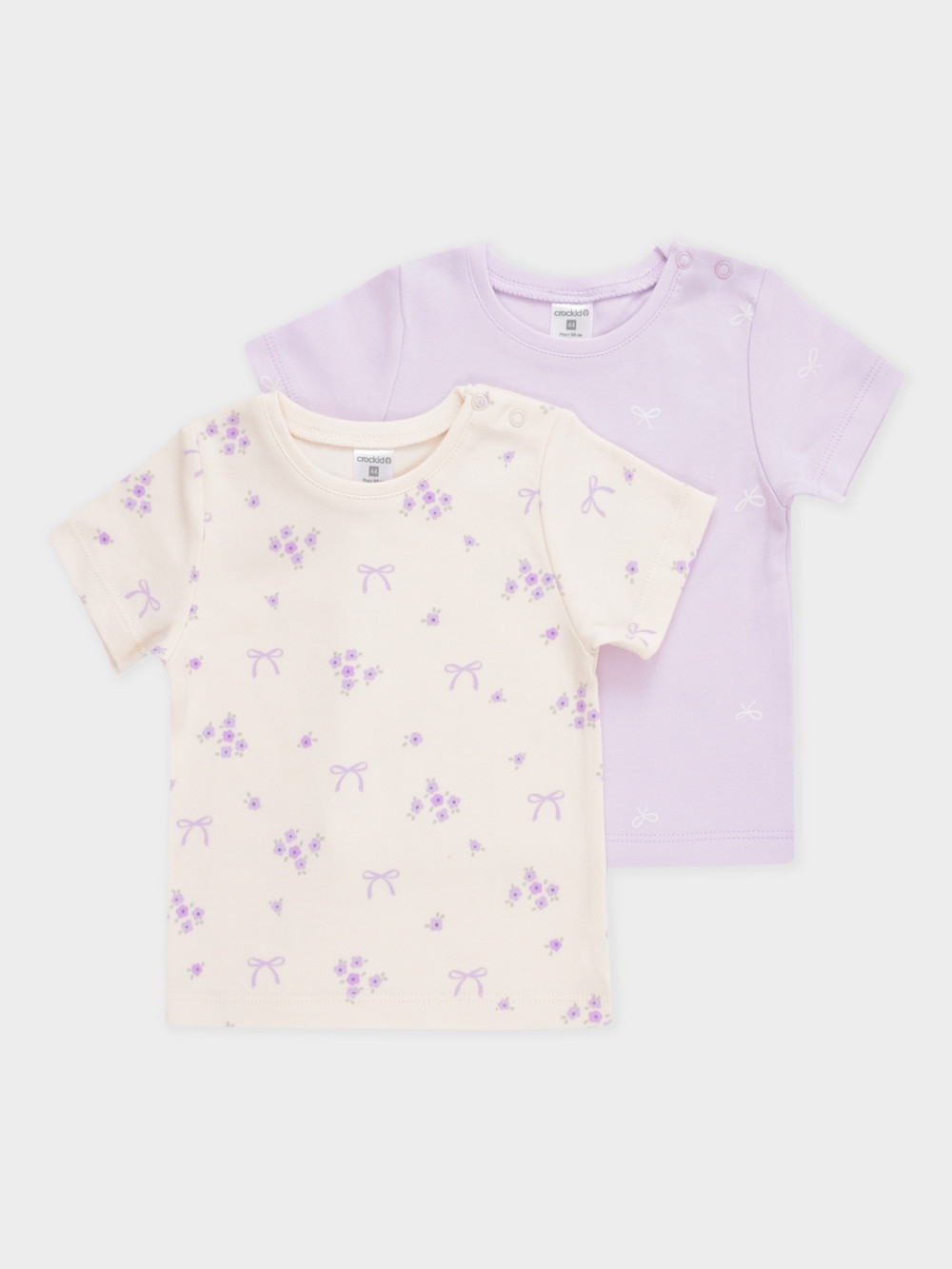 Футболки для девочки из высококачественного трикотажа, произведённого из натурального хлопка. В упаковке 2 штуки. Для удобства на плече застёжка на кнопки. Оригинальная набивка выполнена из стойких гипоаллергенных текстильных красителей. Все трикотажные полотна производятся в соответствии с нормами швейцарского сертификата ЭкоТекс.