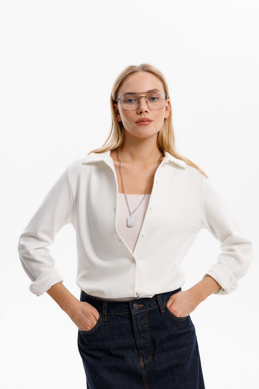 Рубашка прямого кроя из плотного гладкого трикотажа интерлок с длинными рукавами с застежкой на пуговицы