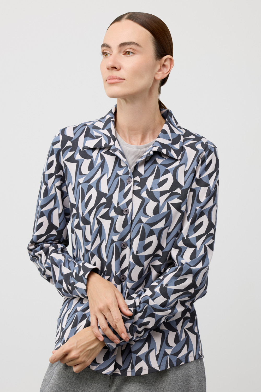 Рубашка, изготовленная из высококачественного трикотажа DOUBLE FACE. Этот материал прошел специальную силиконовую обработку, что делает его невероятно легким и придает текстуре удивительную шелковистость. У рубашки классический воротник и приталенный крой,  что обеспечивает комфорт и стиль в любом образе.