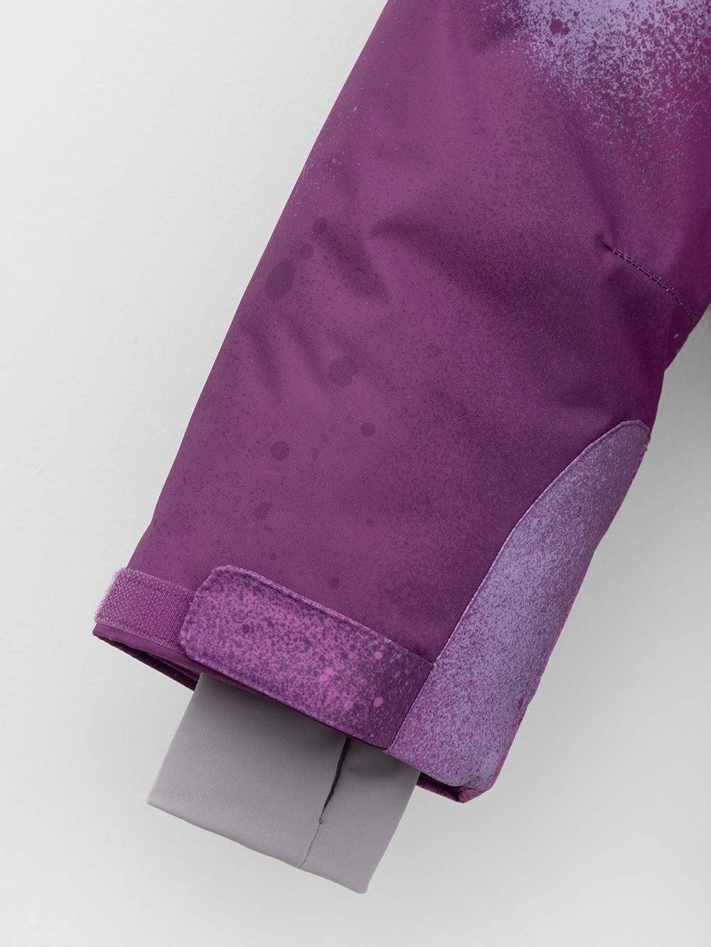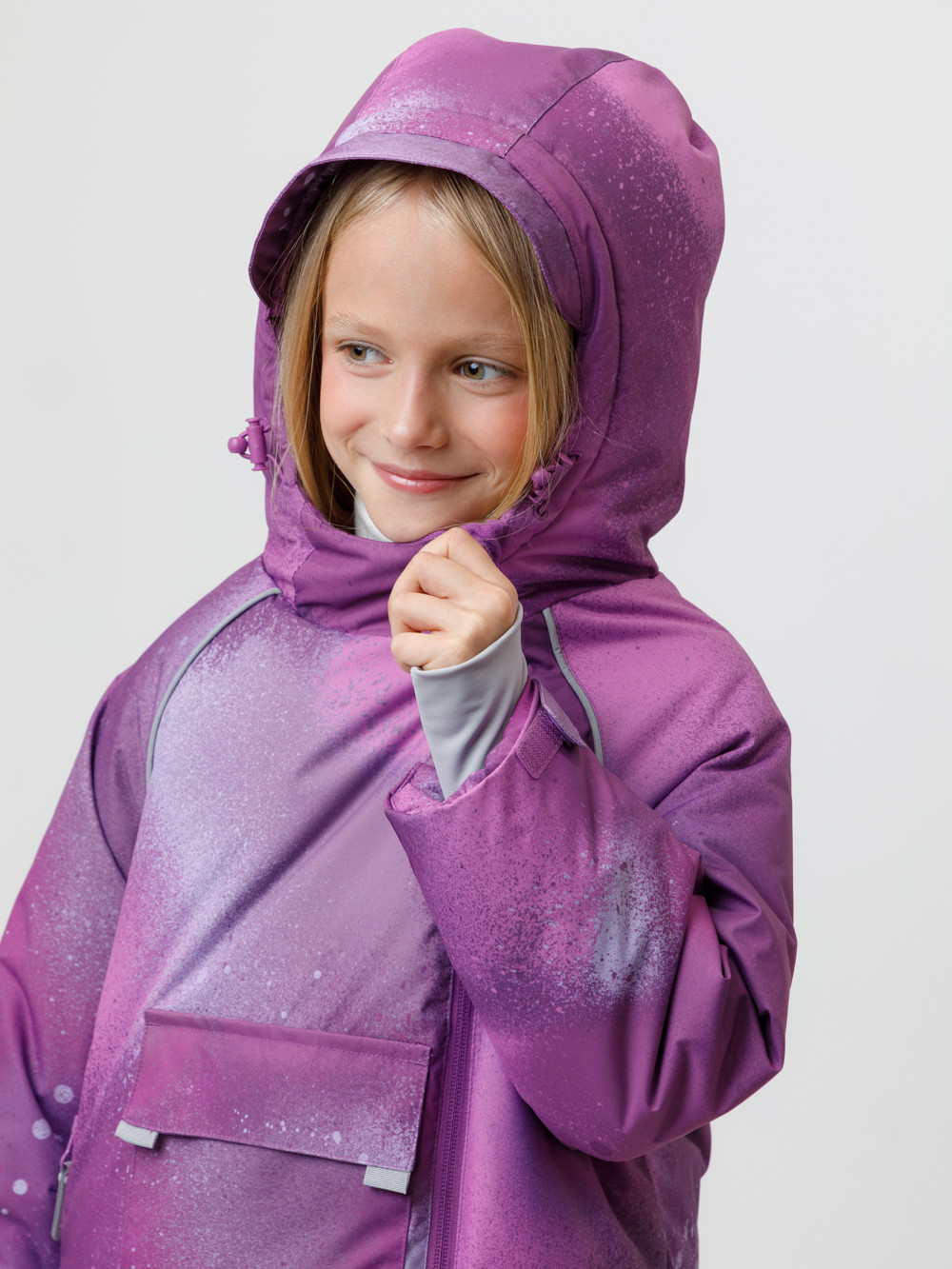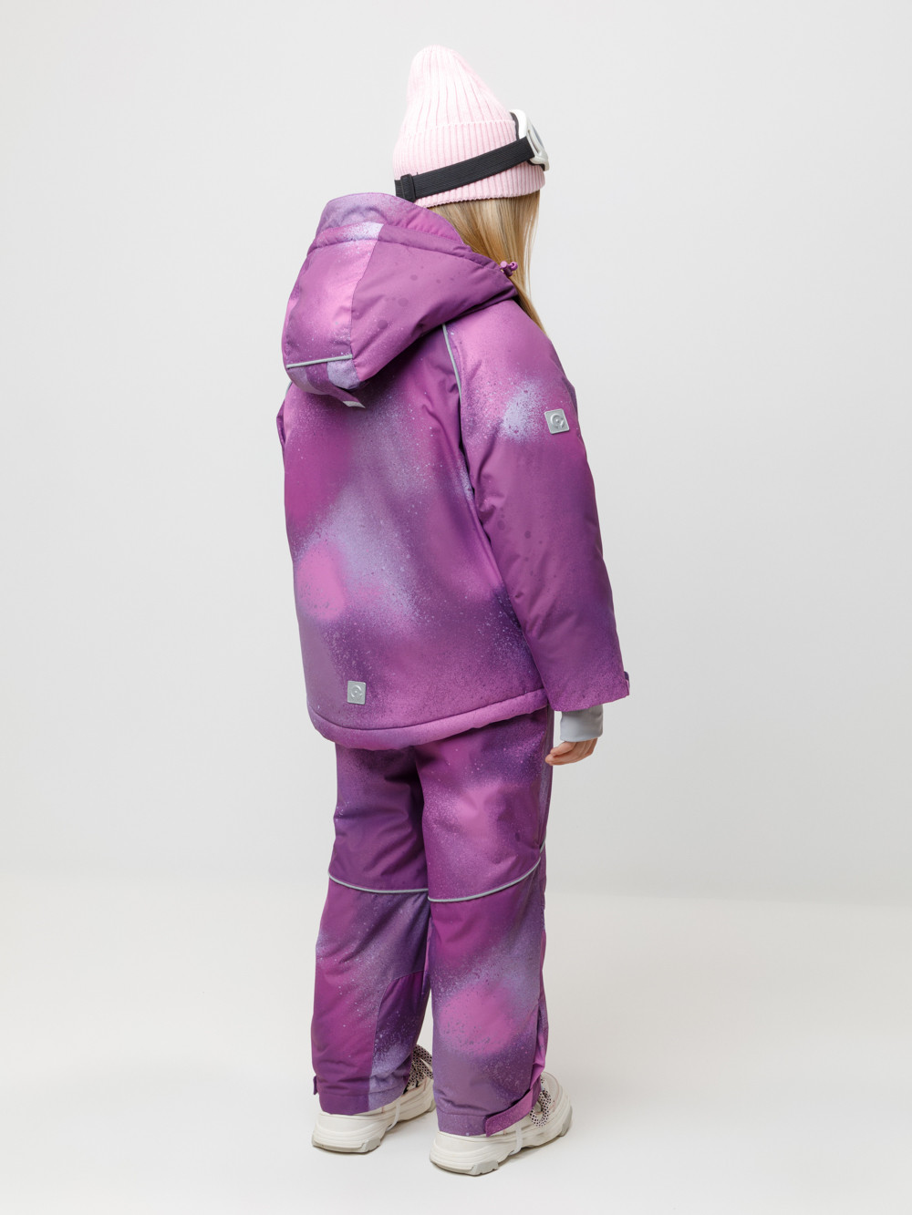 Зимний комплект для девочки с утеплителем Fellex®. Куртка: 250г/м2. Брюки: 120г/м2. Выполнен из мембранной ткани с дополнительной тефлоновой обработкой, которая предохраняет изделие от загрязнений и отталкивает влагу. Подклад выполнен из 100%полиэстера Tricot. Куртка застёгивается на молнию, предусмотрена защита подбородка. Несъёмный капюшон имеет эластичную утяжку со стопперами. На рукавах внутренние эластичные манжеты, ширина регулируется липучками. Накладной карман с клапаном и один карман на молнии. Эластичный пояс на брюках застёгиваются на молнию и кнопку. Подтяжки регулируются по длине. Анатомический крой в области коленей. Карманы в боковых швах. Низ регулируется под ширину обуви и фиксируется на ноге при помощи липучек. Внутренняя противоснежная юбка и отстёгивающиеся штрипки защищают обувь от попадания снега и удерживают брюки в закреплённом положении. Во всех изделиях верхнего ассортимента для безопасности ребёнка предусмотрены светоотражающие элементы.