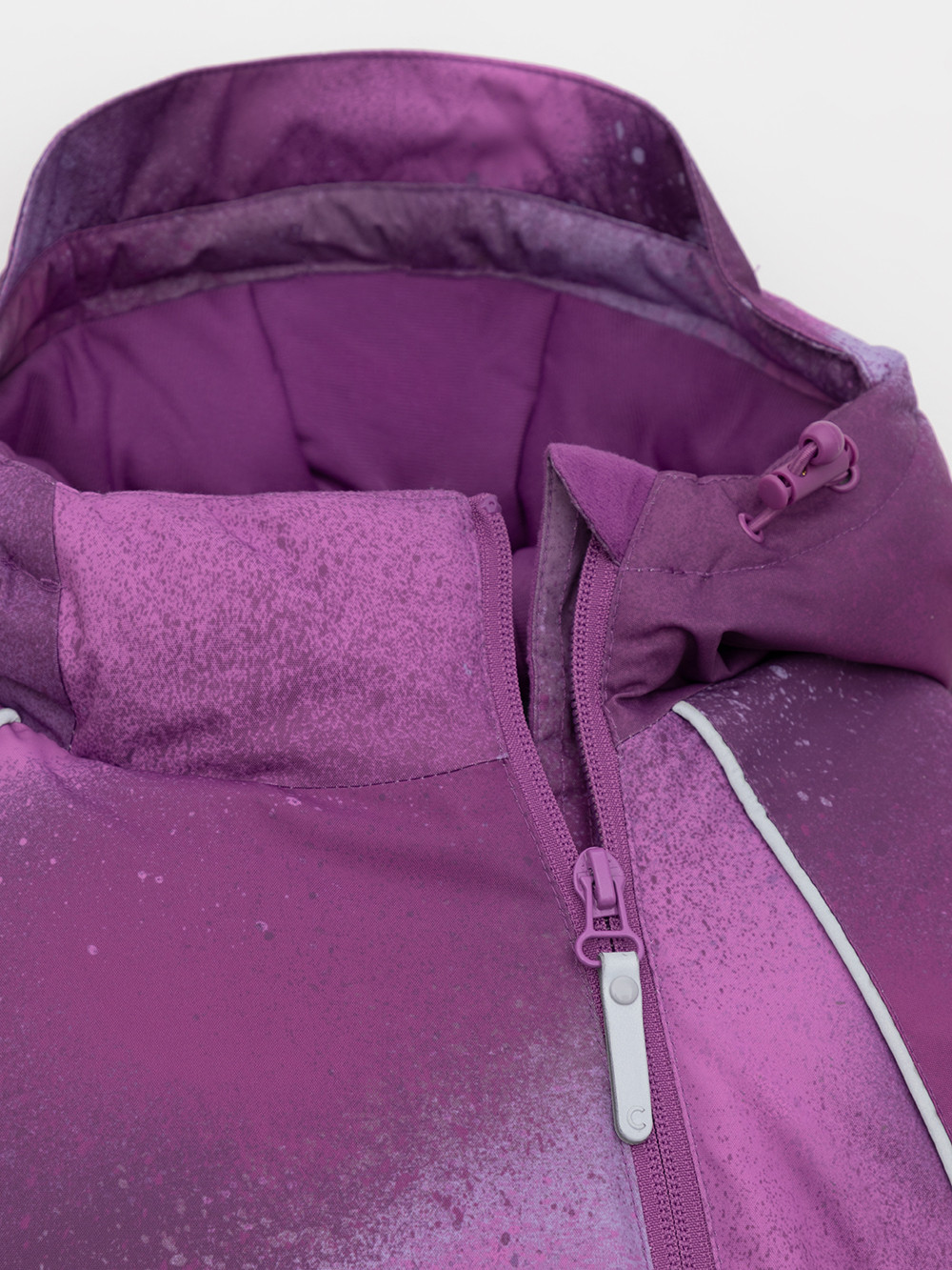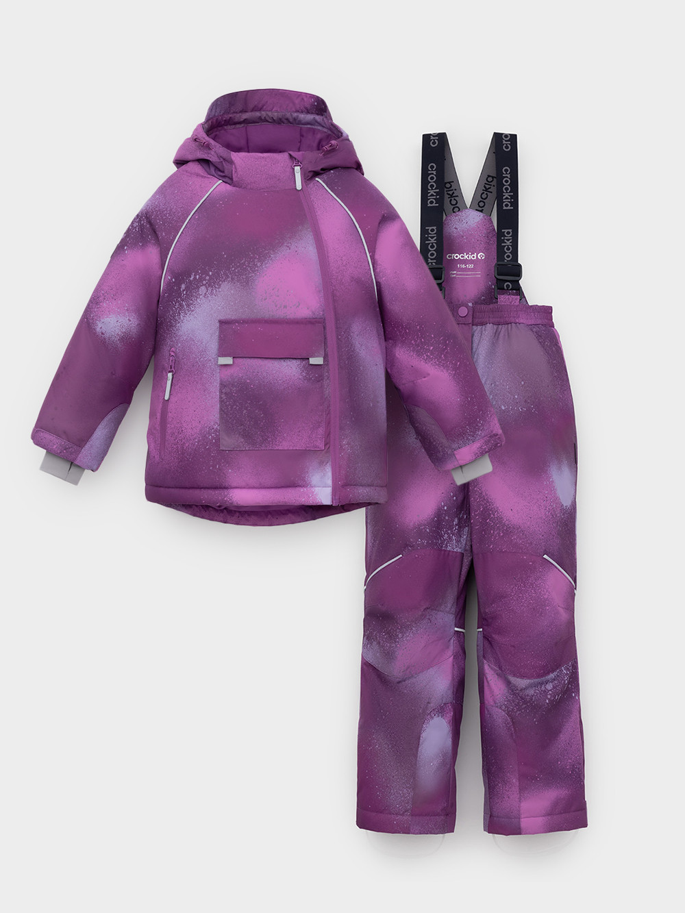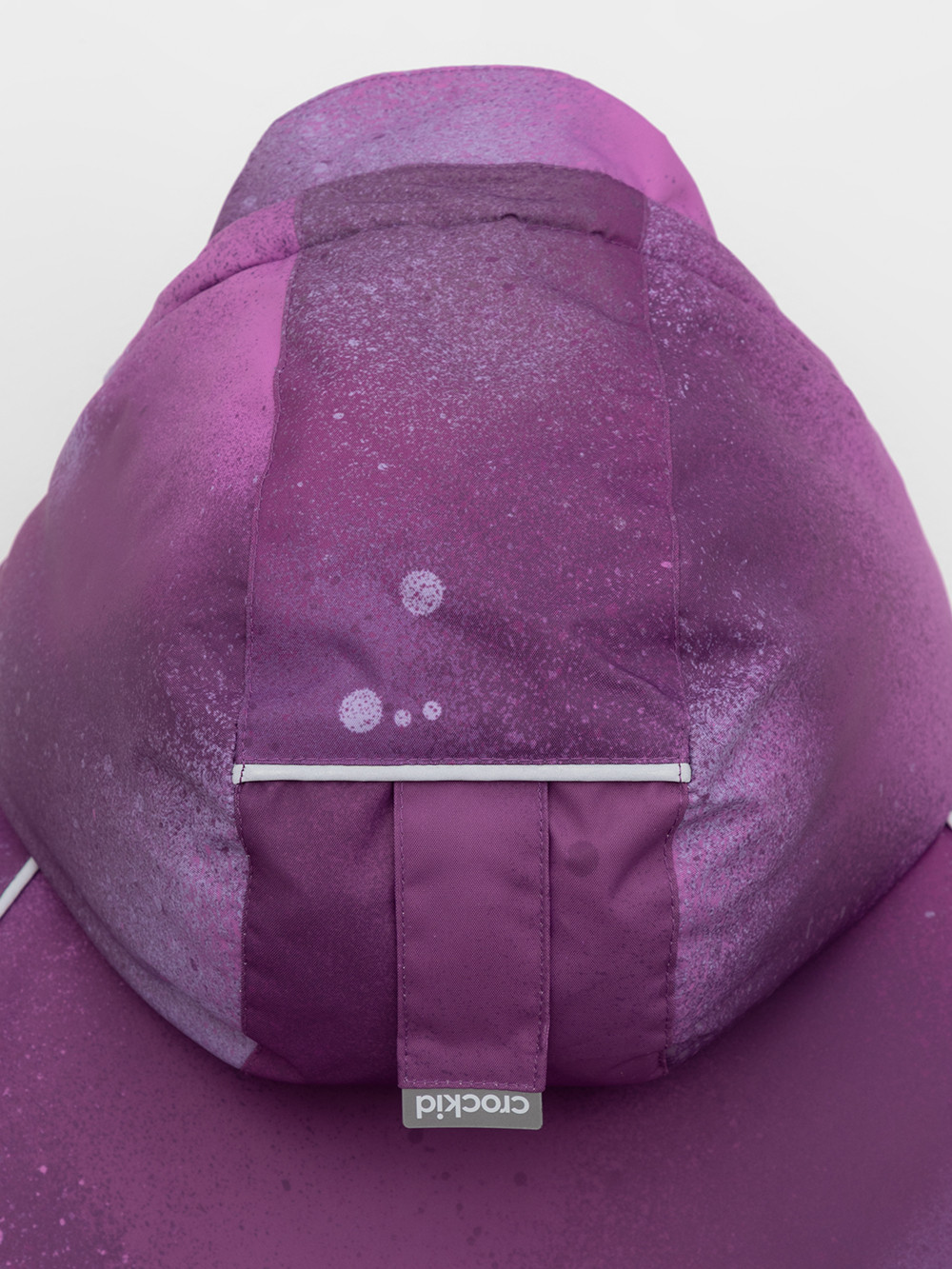 Зимний комплект для девочки с утеплителем Fellex®. Куртка: 250г/м2. Брюки: 120г/м2. Выполнен из мембранной ткани с дополнительной тефлоновой обработкой, которая предохраняет изделие от загрязнений и отталкивает влагу. Подклад выполнен из 100%полиэстера Tricot. Куртка застёгивается на молнию, предусмотрена защита подбородка. Несъёмный капюшон имеет эластичную утяжку со стопперами. На рукавах внутренние эластичные манжеты, ширина регулируется липучками. Накладной карман с клапаном и один карман на молнии. Эластичный пояс на брюках застёгиваются на молнию и кнопку. Подтяжки регулируются по длине. Анатомический крой в области коленей. Карманы в боковых швах. Низ регулируется под ширину обуви и фиксируется на ноге при помощи липучек. Внутренняя противоснежная юбка и отстёгивающиеся штрипки защищают обувь от попадания снега и удерживают брюки в закреплённом положении. Во всех изделиях верхнего ассортимента для безопасности ребёнка предусмотрены светоотражающие элементы.