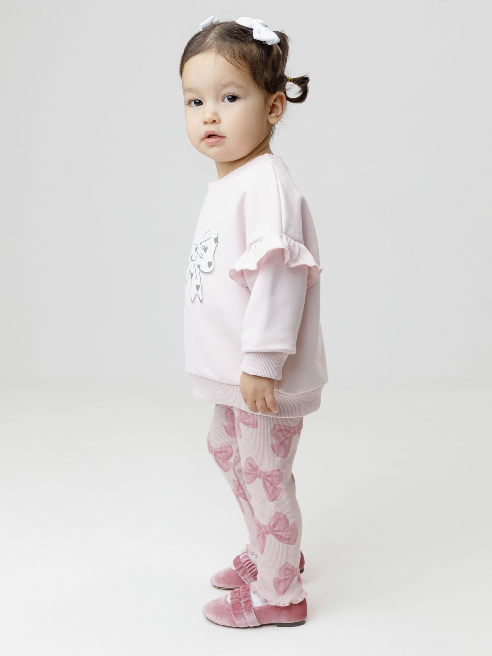 Лосины для девочки из эластичного трикотажного полотна в рубчик. Изделие сохраняет цвет и форму после многократных стирок. Все трикотажные полотна производятся в соответствии с нормами швейцарского сертификата ЭкоТекс.