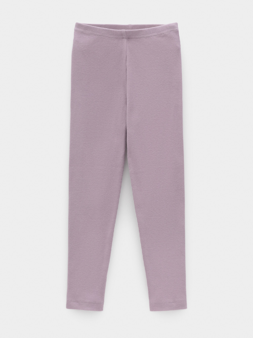 Трикотажные лосины для девочки из эластичного полотна в рубчик. Изделие сохраняет цвет и форму после многократных стирок. Все трикотажные полотна производятся в соответствии с нормами швейцарского сертификата ЭкоТекс.